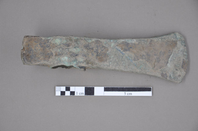 The exact origins of this copper-alloy axe were unknown, but it was found by a metal detector on the island of Langeland (Denmark). As it is a unique object, it was treated irrespective of its unknown contexts. The dirt was removed with a stiff brush and wooden stick so as not to remove the remaining patinated surface. The after photos were taken at this stage and the axe was placed into a cabinet with silica gel and carefully monitored relative humidity. At a later date, it was treated by another conservator with 3% BTA and 10% Paraloid B72 in ethanol before being put into storage with less environmental controls. This is just one example of many copper-alloy archaeological objects that I have treated over the years.